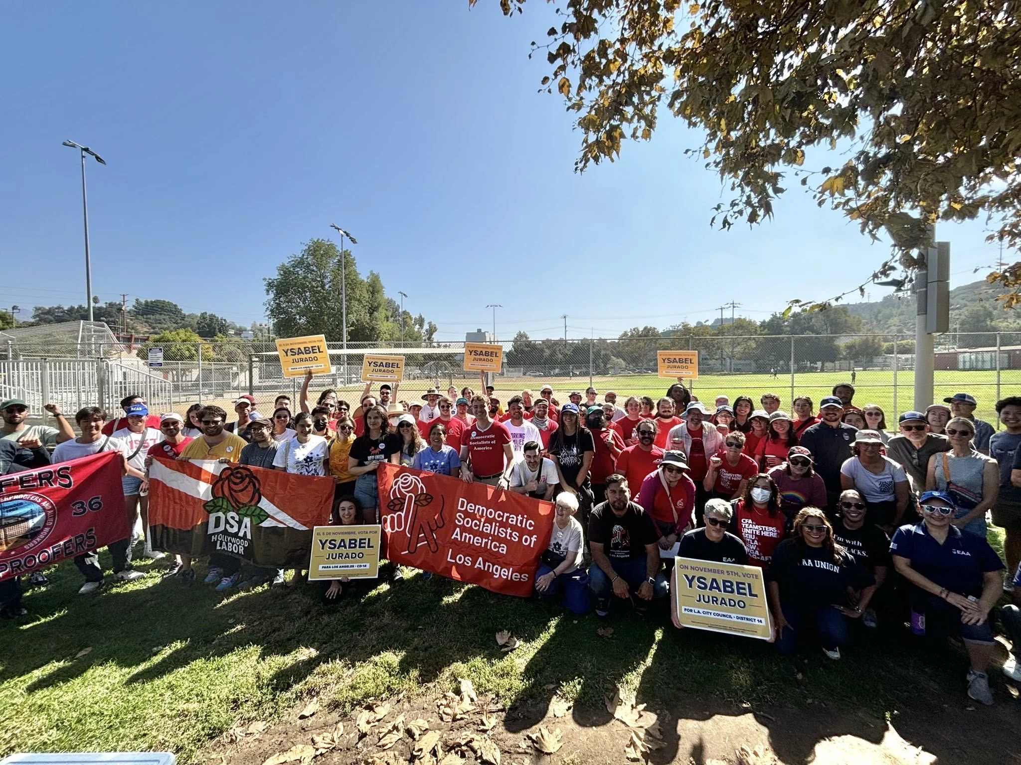 DSA-LA and labor union members gather for a massive DSA Labor canvass for Ysabel Jurado, running for LA City Council district 14